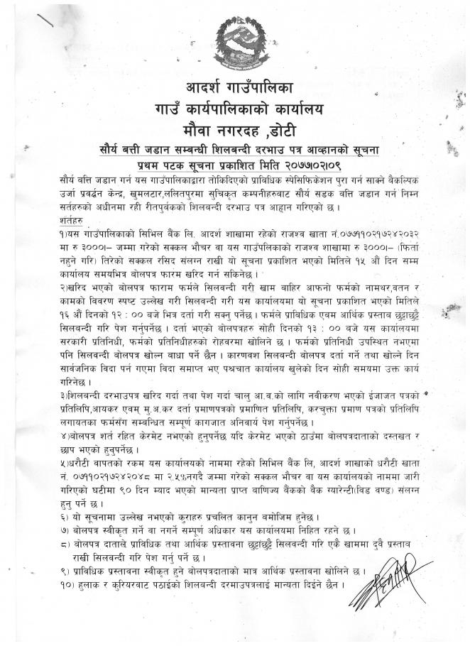 सार्वजनिक खरिद/बोलपत्र सूचना