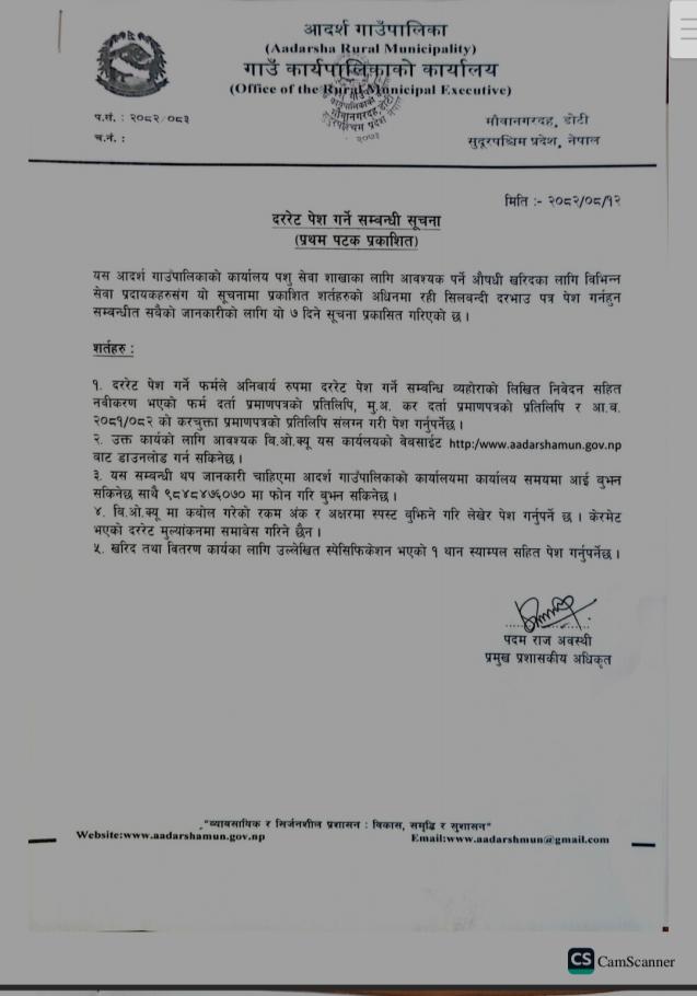 दर रेट पेश गर्ने सम्बन्धी सूचना ।।
