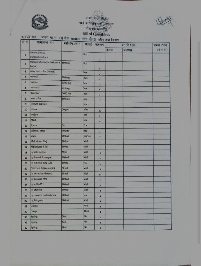 सार्वजनिक खरिद/बोलपत्र सूचना
