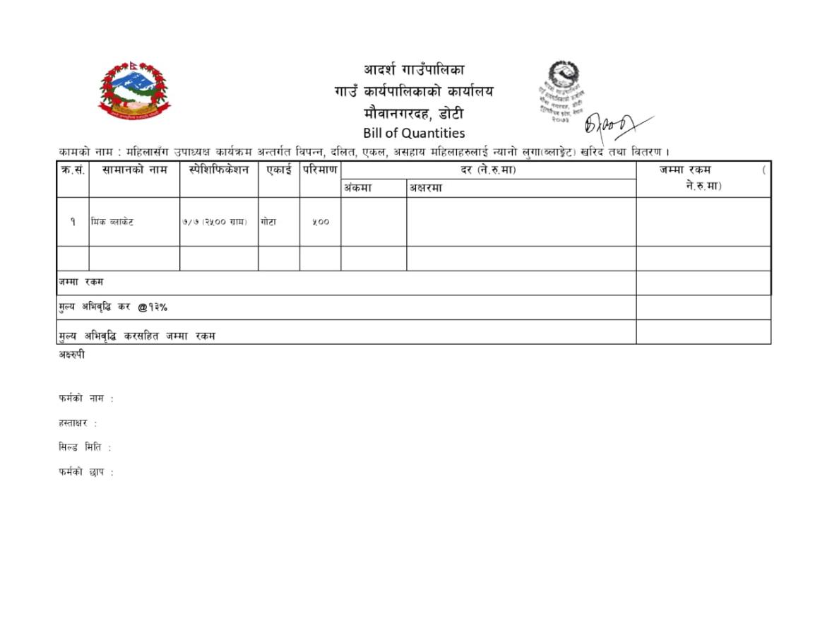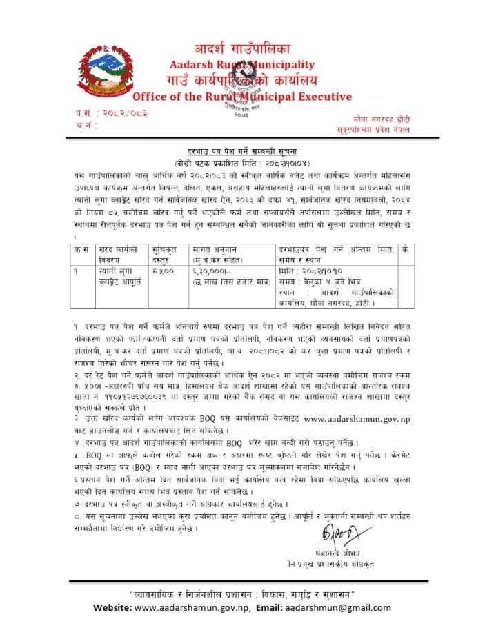 सार्वजनिक खरिद/बोलपत्र सूचना