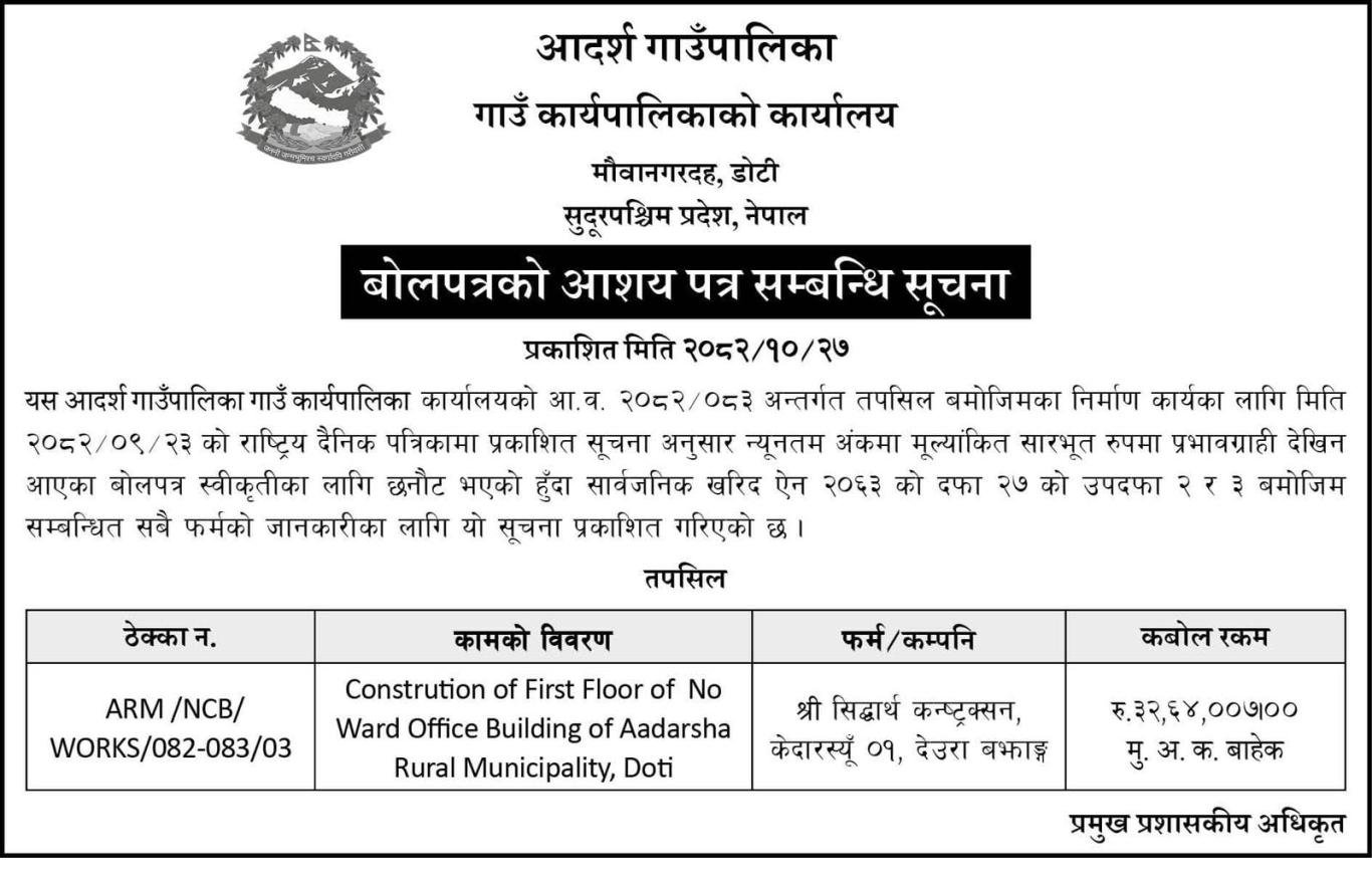 » बोलपत्रको आशय पत्र सम्बन्धि सूचना ।